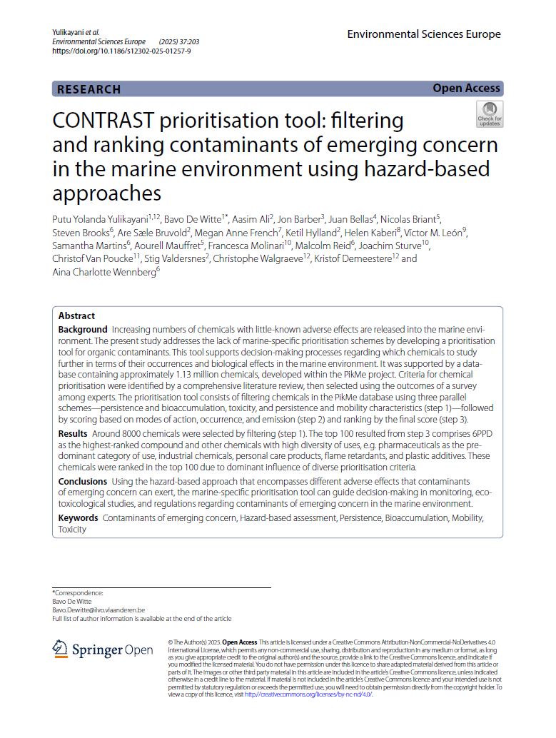 Yulikayani et al. (2025). CONTRAST prioritisation tool: filtering and rankingcontaminants of emerging concern in the marine environment using hazard-basedapproaches. Environmental Sciences Europe. https://link.springer.com/article/10.1186/s12302-025-01257-9